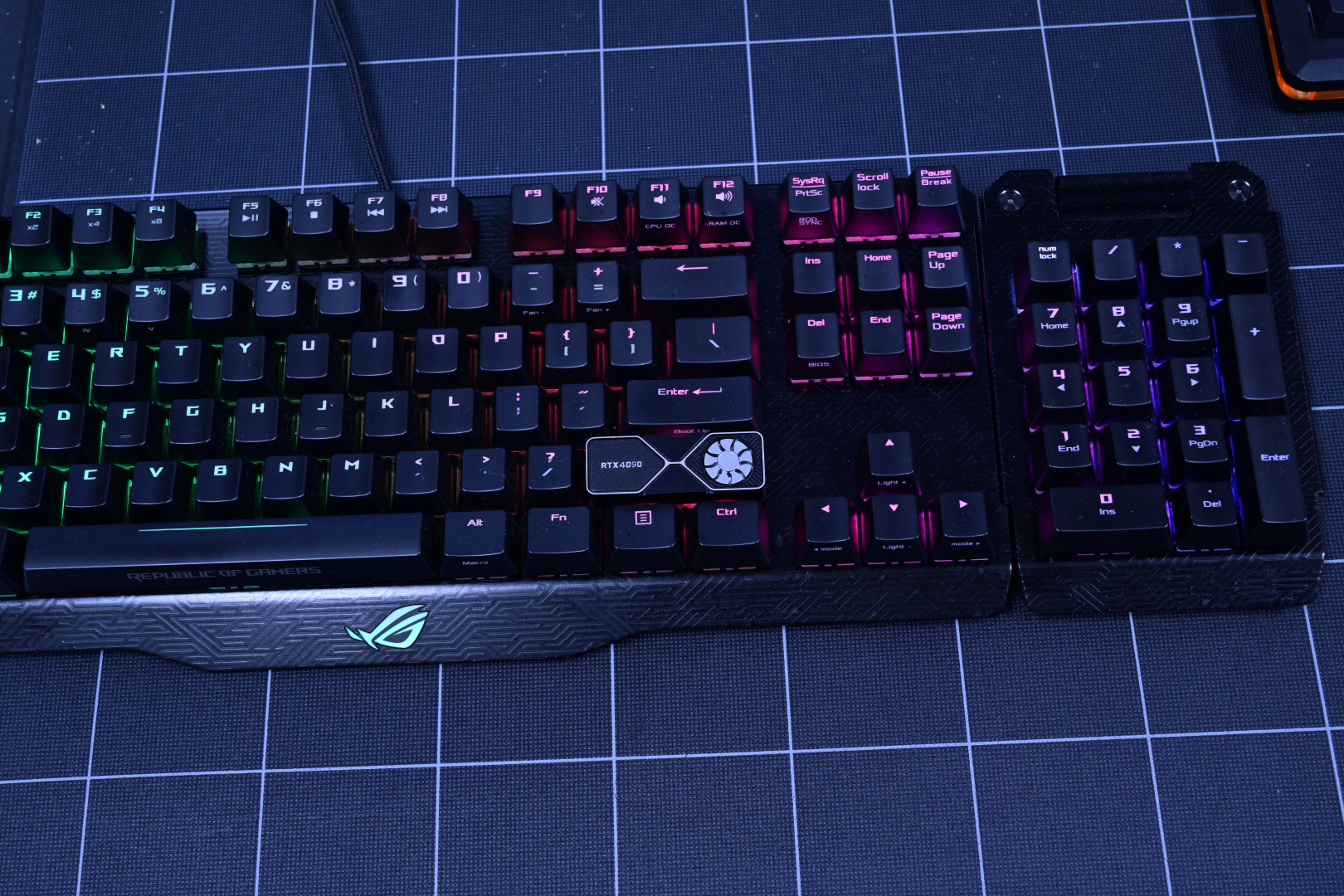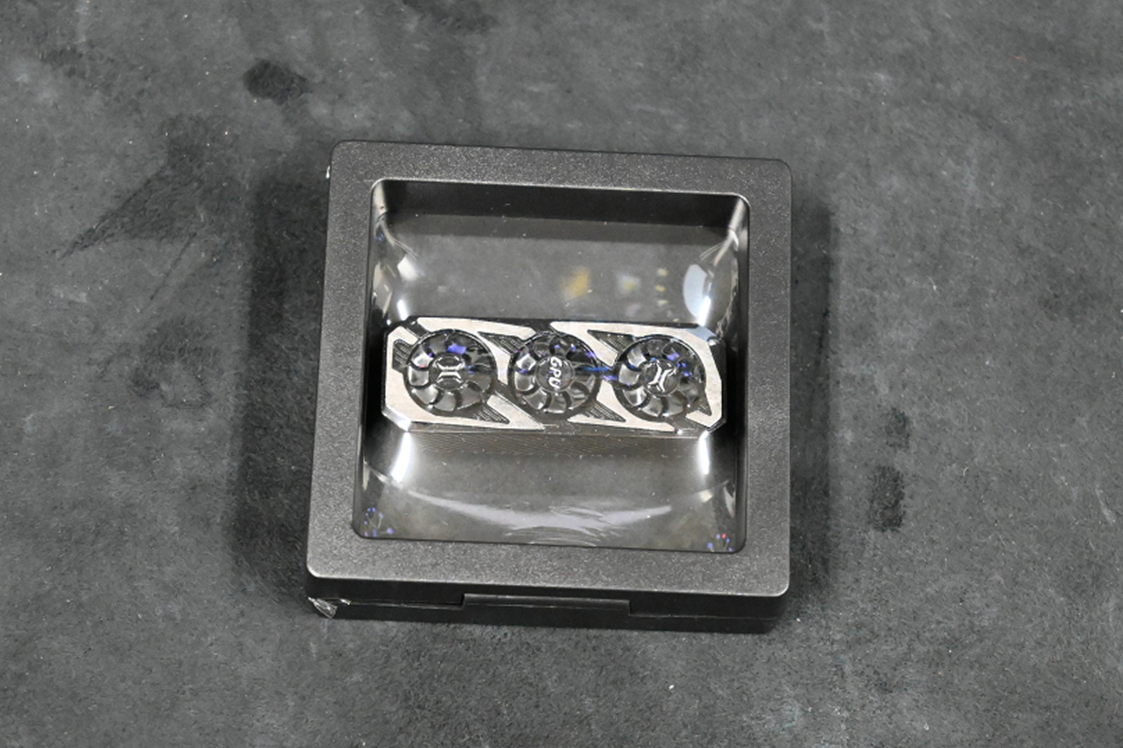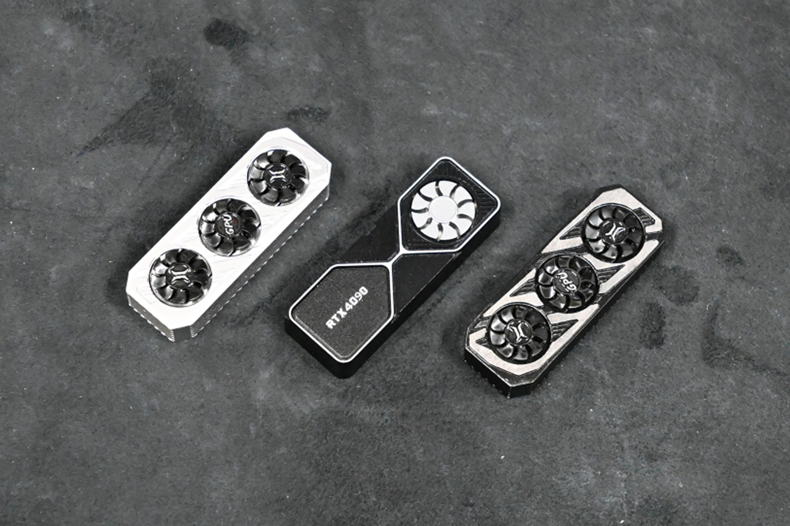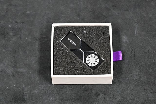 キーボードのシフトキャップに付けられる Holyoops-RTX4090 と 回転式ファン グラフィックカード