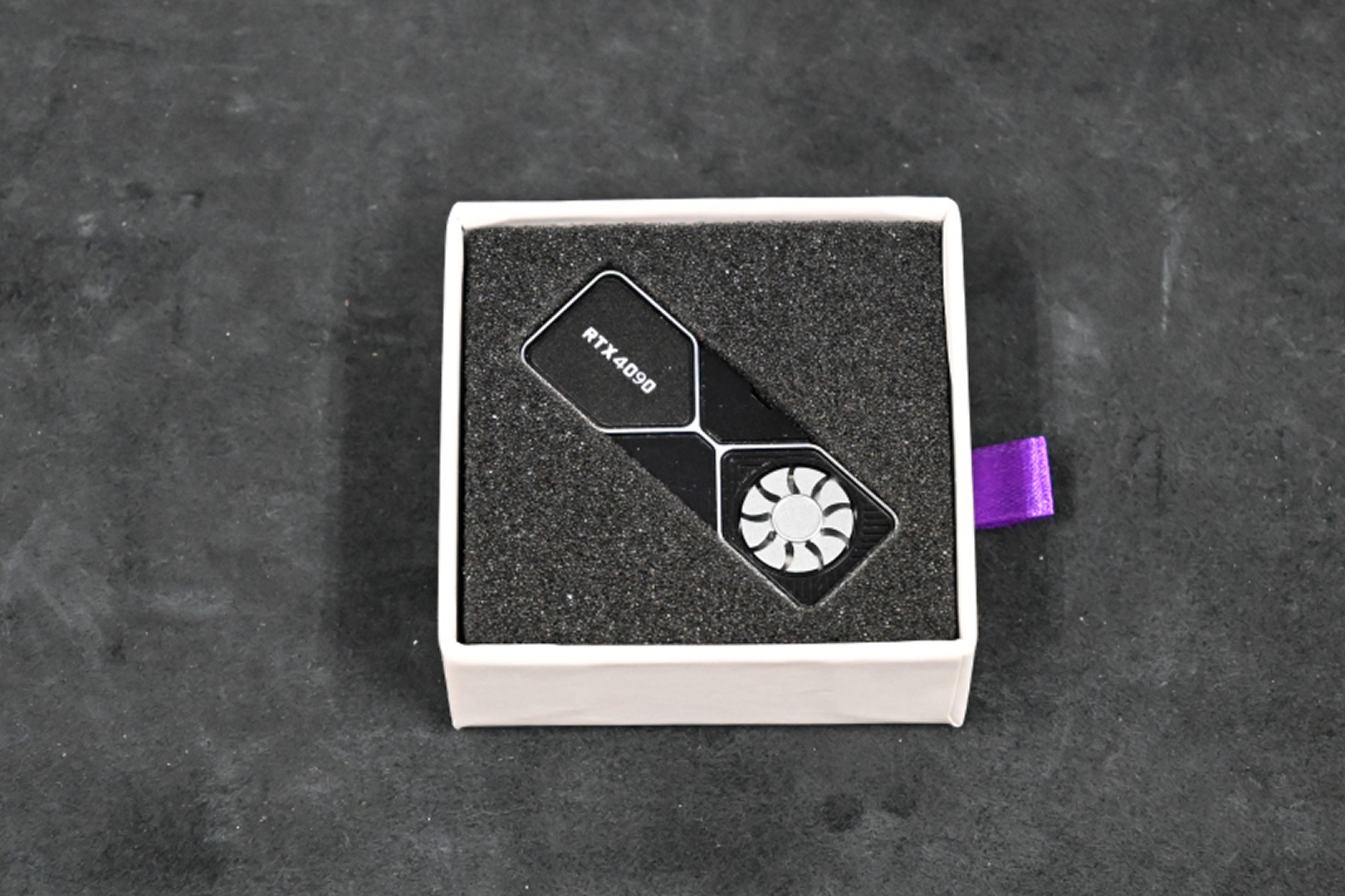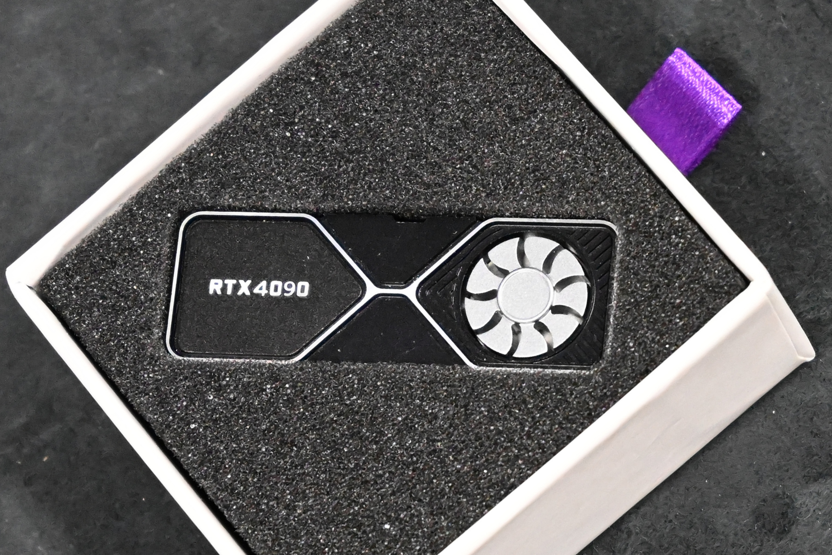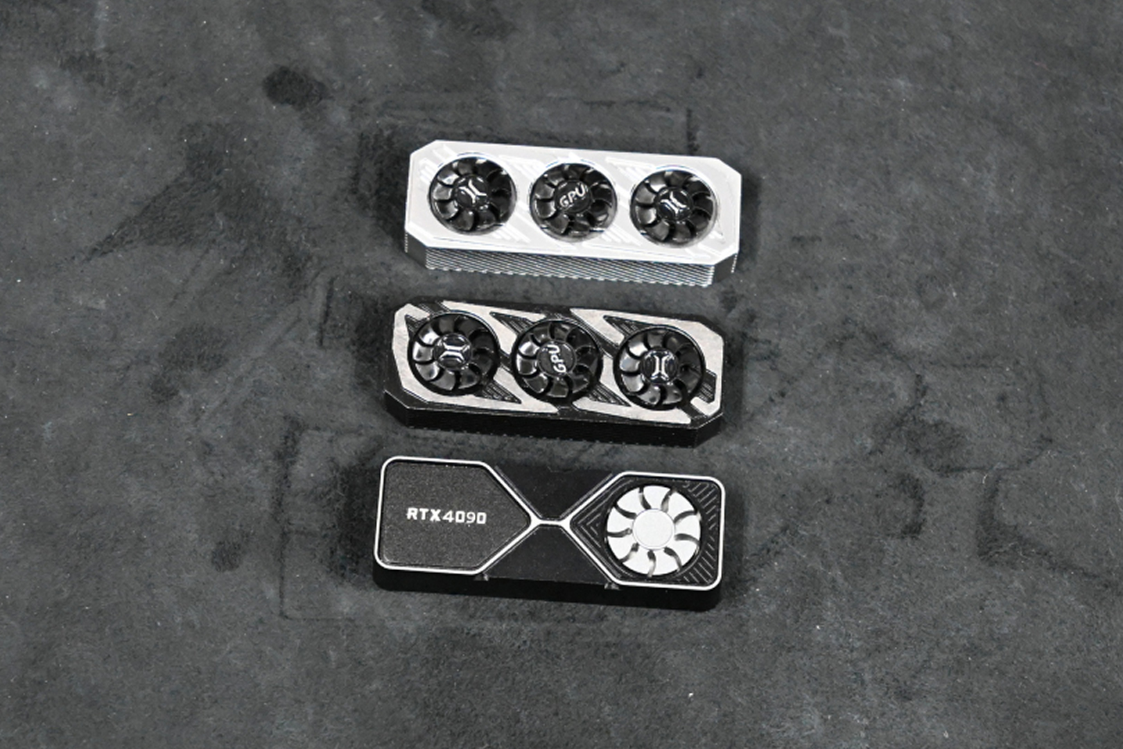 キーボードのシフトキャップに付けられる Holyoops-RTX4090 と 回転式ファン グラフィックカード